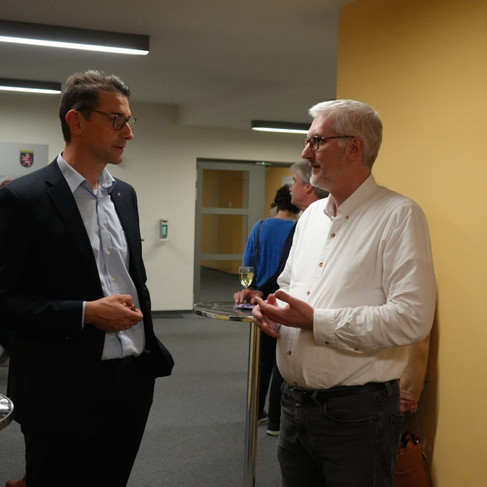 Die Vorstandsmitglieder, Polizeipräsident Felix Paschek und Andrea Götz, Leiterin der Presse-und Öffentlichkeitsarbeit, genossen gemeinsam mit den Gästen die Atmosphäre und den Austausch über die spannende Kriminalgeschichte „Wiesbadener Visionen“.